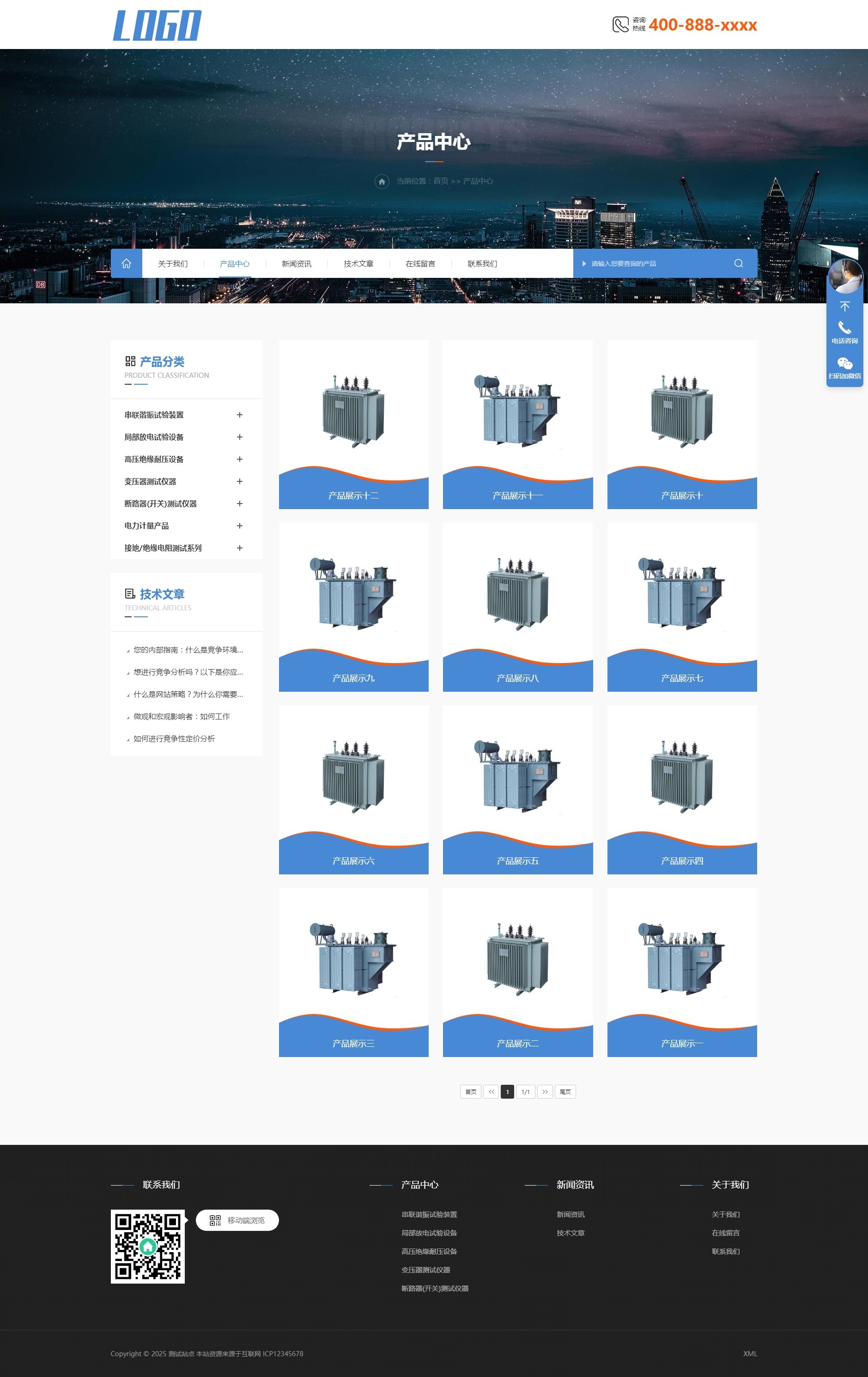 1、变压器电力设备响应式网站模板,自适应手机端适配。