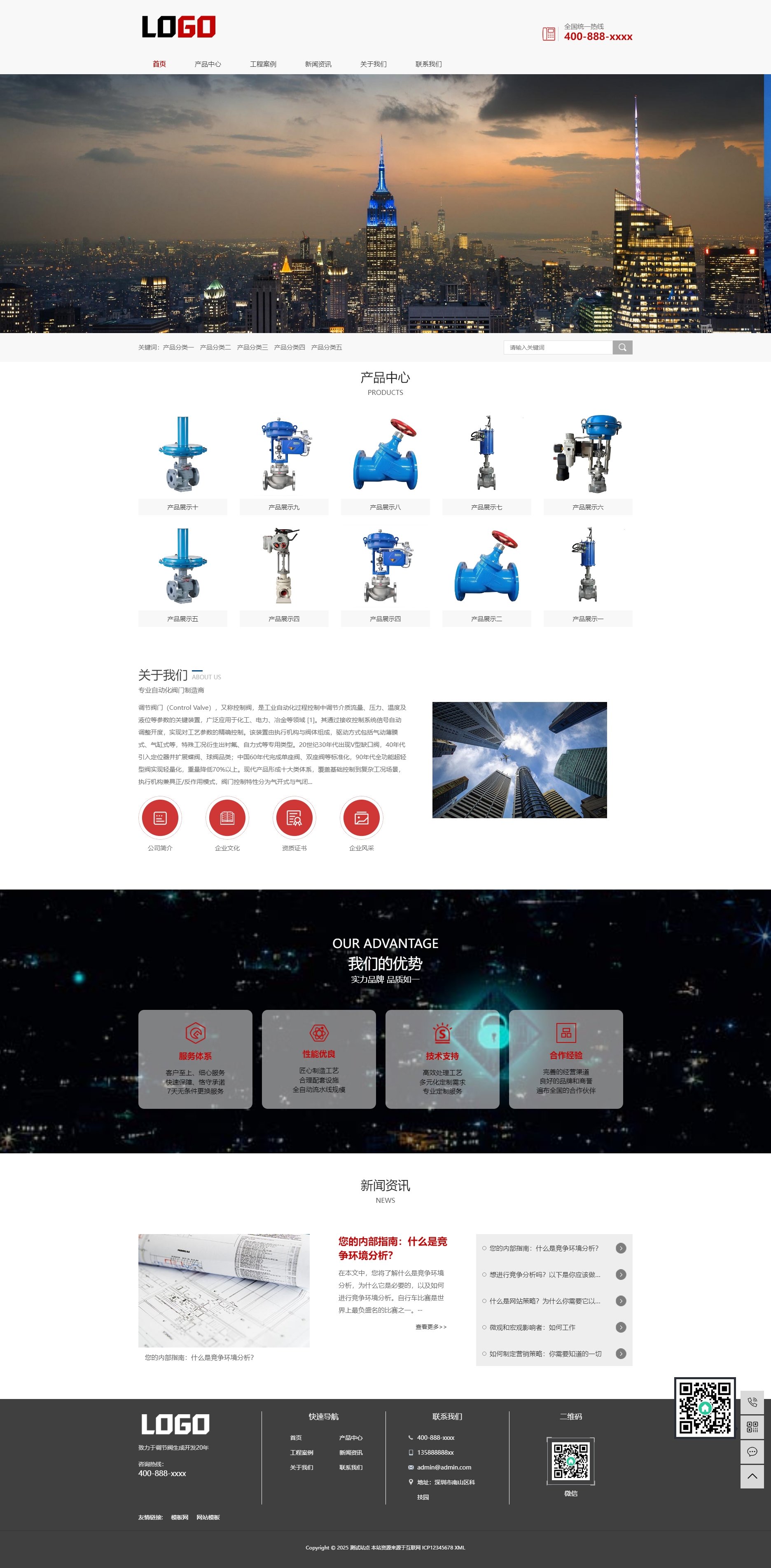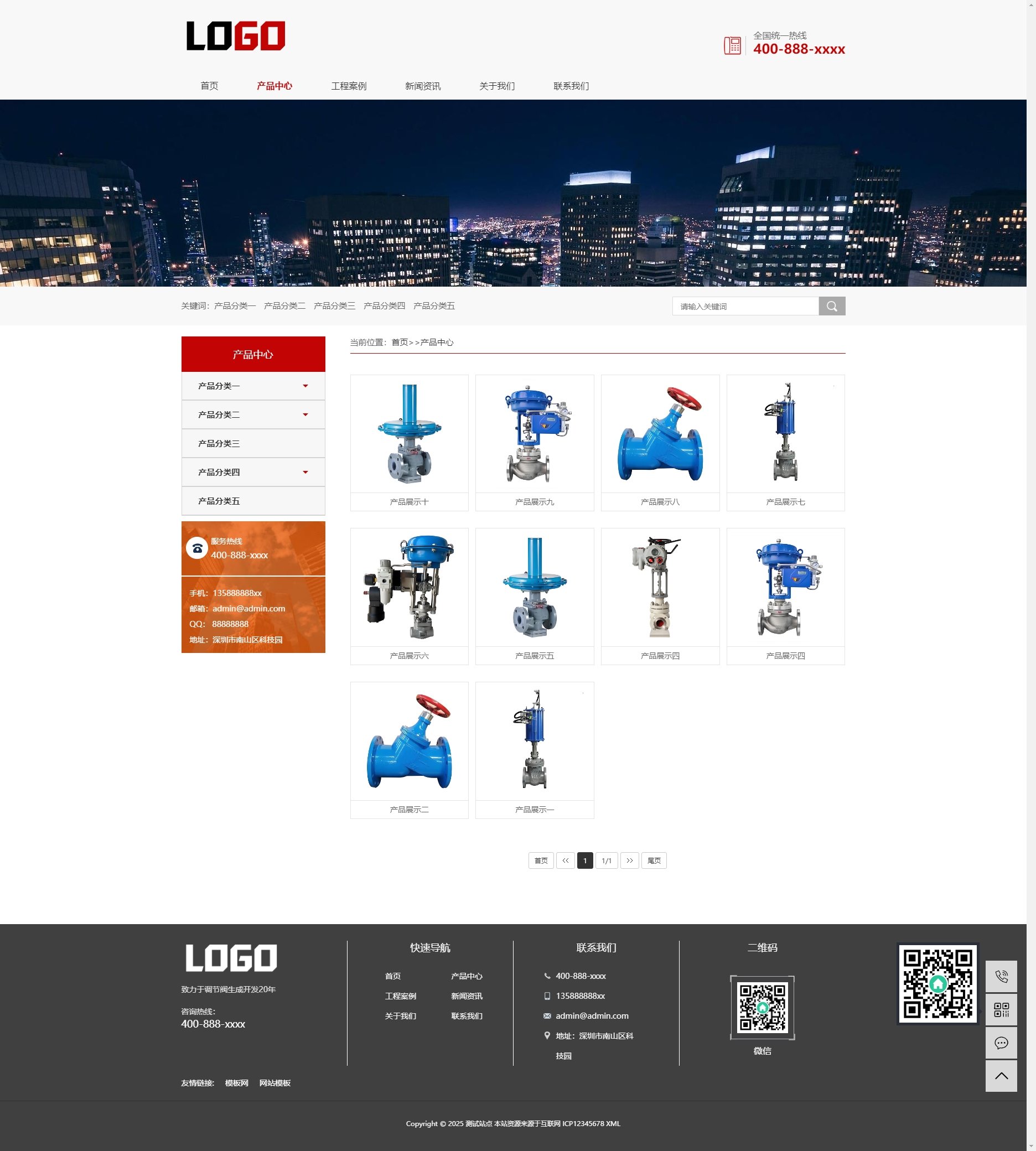 调节阀门气动球阀响应式pbootcms网站模板是一款专为阀门生产、阀门制造、机械仪表仪器生产企业设计的整站网站模板,基于PbootCMS,采用响应式自适应设计,后台可一键同步数据,上传到空间或者服务器上即可使用。该模板通用性设计使其可以轻松适应其他行业,只需更换相应的文字和图片即可。模板提供完整的安装教程和测试数据,用户可以方便地进行本地测试和部署,修改和部署上线都很方便。