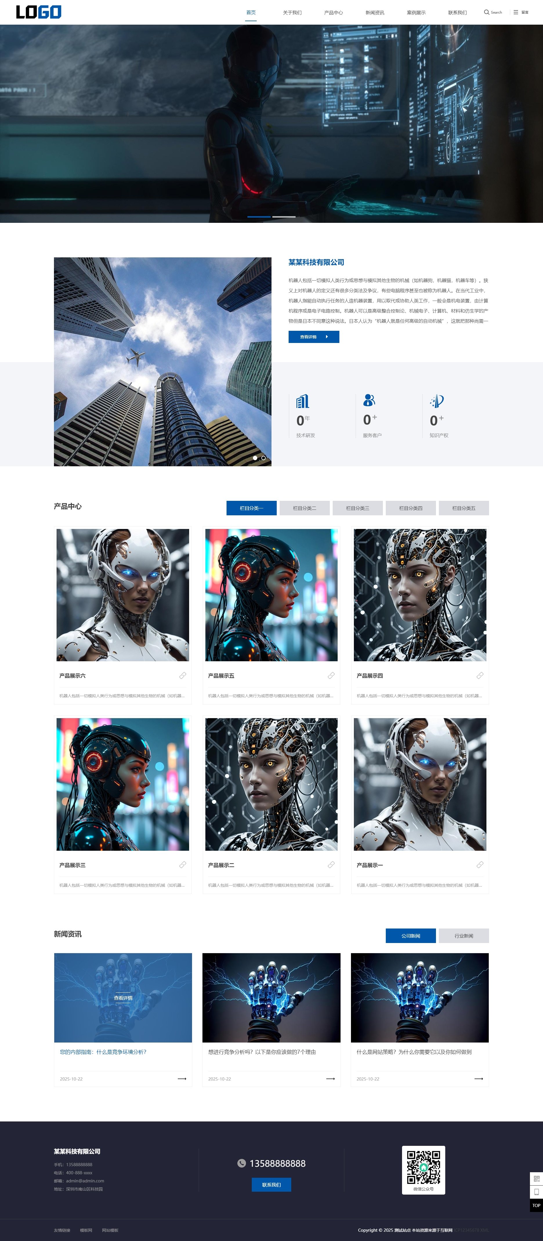 AI人工智能机器人科技公司pbootcms网站模板是一款专为智能科技公司、AI人工智能公司、机器人研发生产企业设计的整站网站模板,基于PbootCMS,采用响应式自适应设计,后台可一键同步数据,上传到空间或者服务器上即可使用。该模板通用性设计使其可以轻松适应其他行业,只需更换相应的文字和图片即可。模板提供完整的安装教程和测试数据,用户可以方便地进行本地测试和部署,修改和部署上线都很方便。