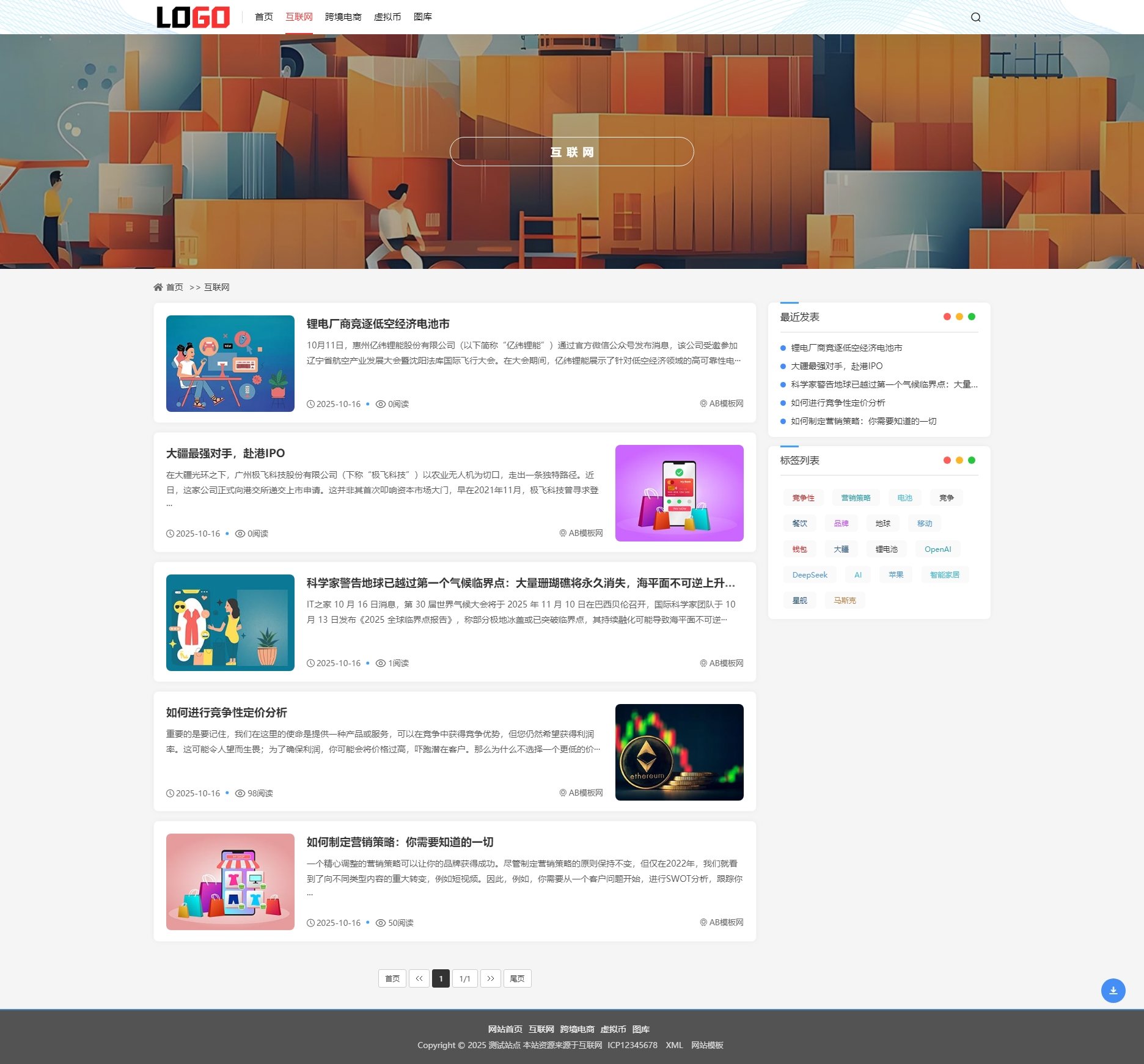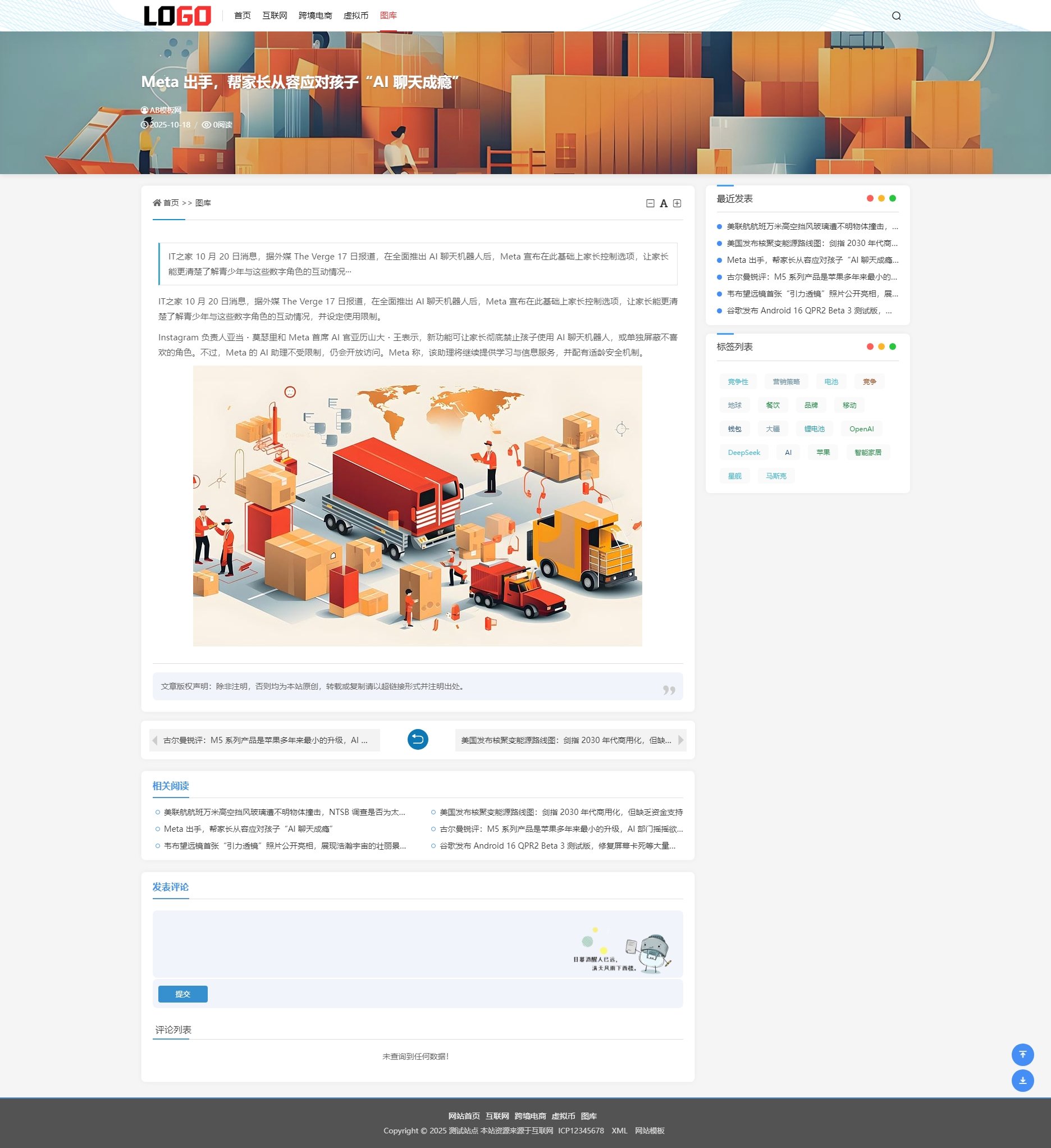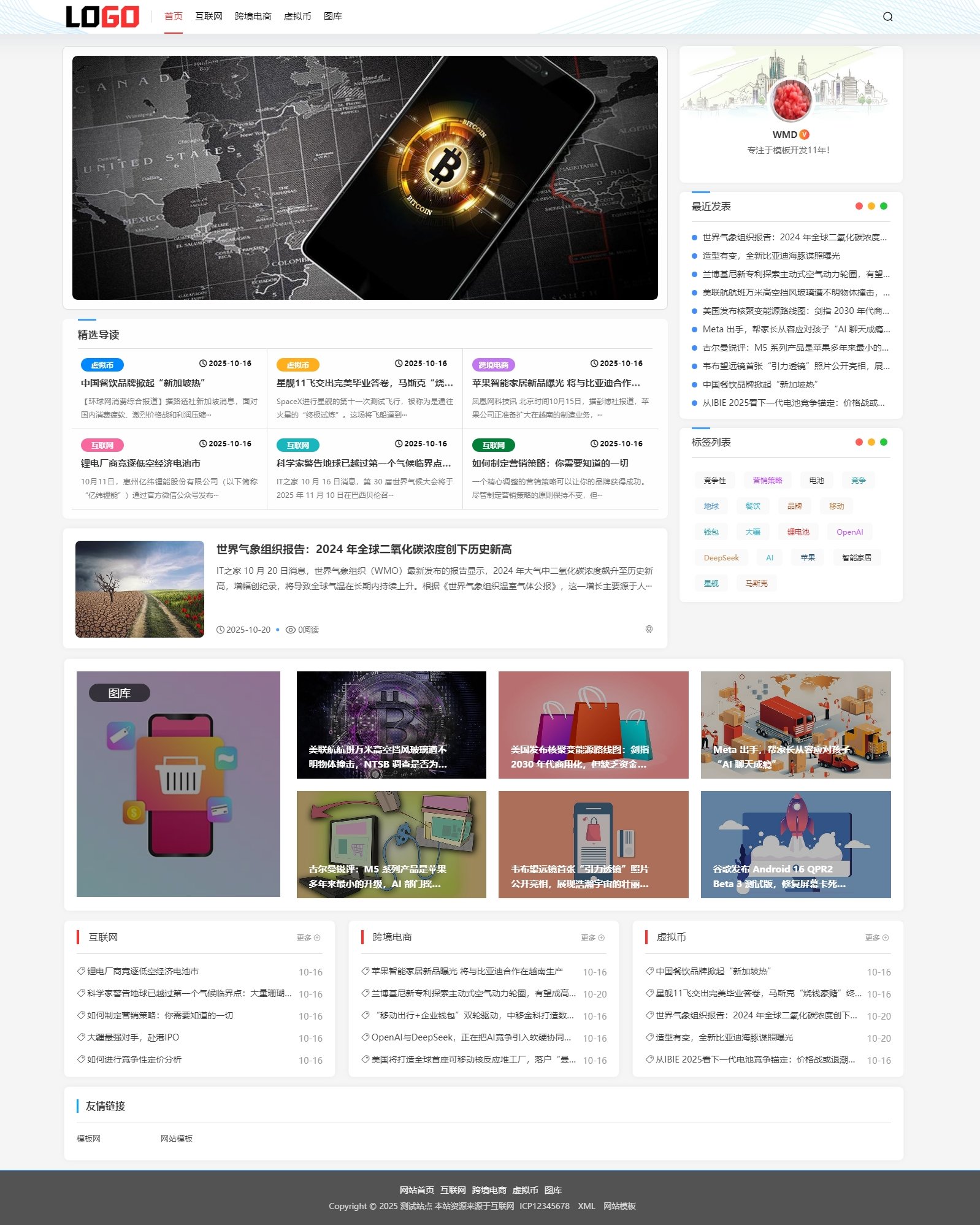 - 栏目设定:网站预设互联网、跨境电商、虚拟币等栏目,网站带评论功能,可展示需要的资讯内容。