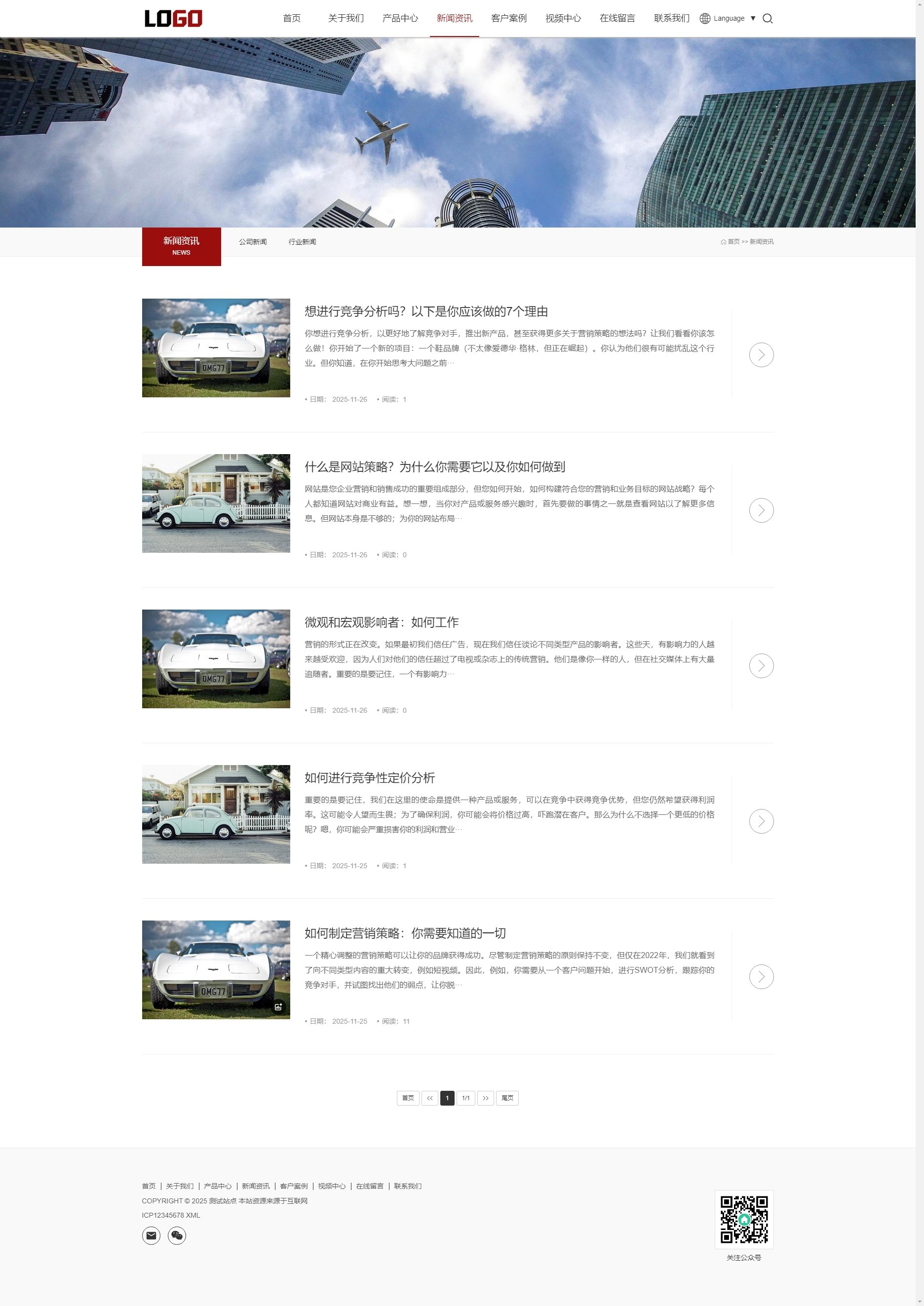- 栏目设定:网站预设新闻资讯、产品展示、客户案例、视频中心、联系我们等栏目和功能,可展示公司企业需要的内容。