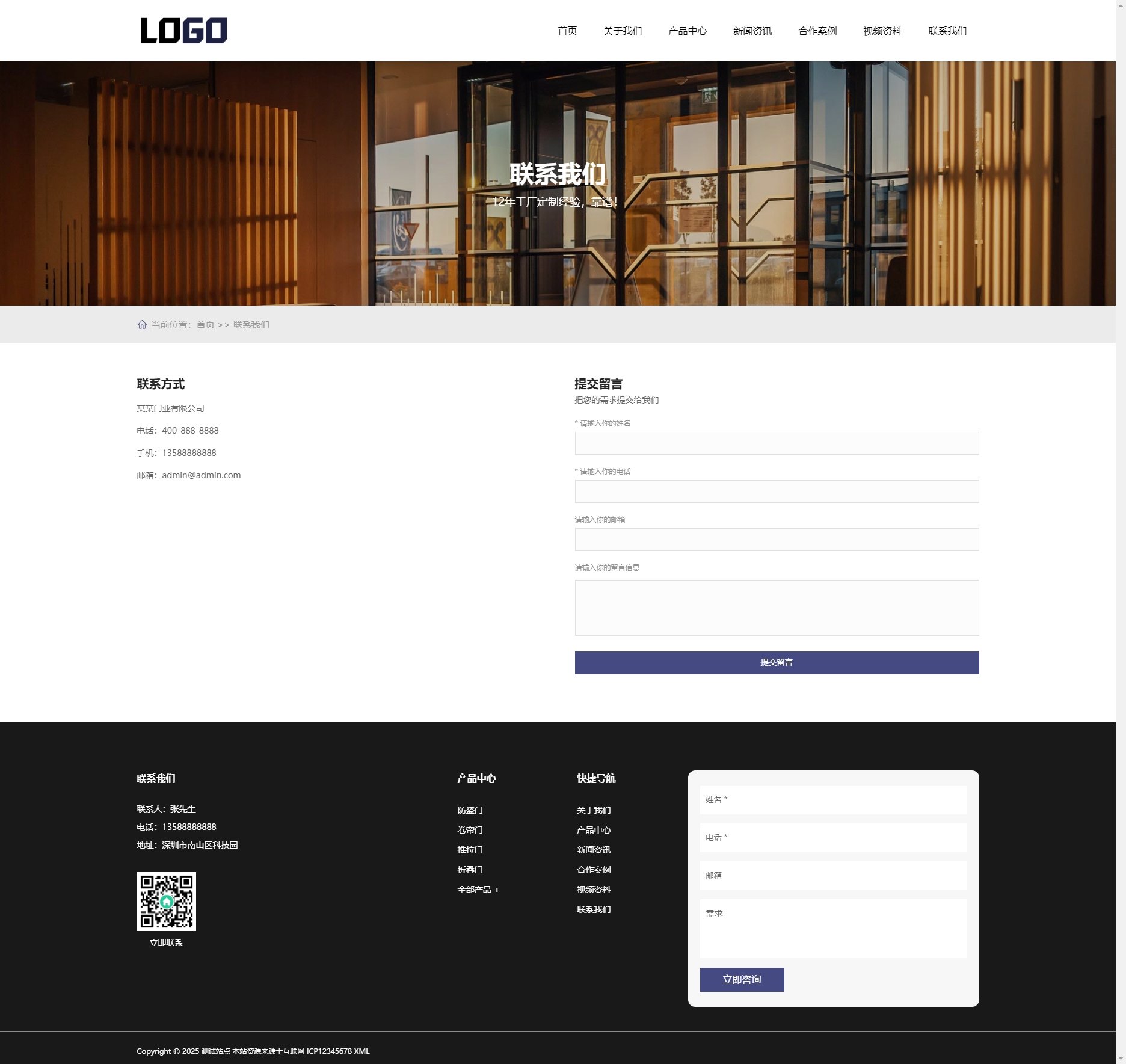 - 栏目设定:网站预设新闻资讯、案例展示、视频资料、联系我们等栏目和功能,可展示门窗门业建材公司需要的内容。
