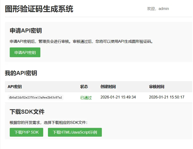 - 6. SDK 支持 提供 PHP SDK,方便快速集成 提供 HTML/JavaScript 示例 支持 CURL 请求 技术特点 轻量级设计:无数据库依赖,使用 JSON 文件存储 易于部署:仅需 PHP 环境,无需复杂配置 高度可定制:支持多种验证码参数配置 安全可靠:数据加密存储,验证码安全性高 完善的 API:提供 RESTful API 接口 友好的管理界面:直观的后台管理界面 良好的扩展性:模块化设计,便于功能扩展